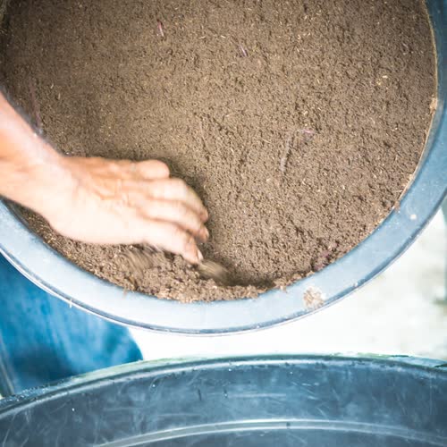 "การเก็บเกี่ยวมูลไส้เดือน (แบบปาด)".
