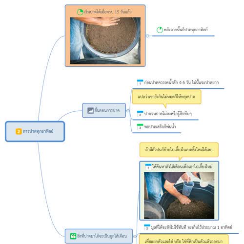 | คำสำคัญ : แผนที่ความคิด, การปาดทุกอาทิตย์, mind map, ไส้เดือน, การขยายพันธุ์และการเก็บเกี่ยว, การเลี้ยงไส้เดือนและผลพลอยได้, การปาด, การเก็บเกี่ยว |