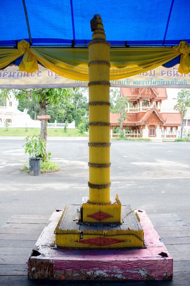| คำอธิบาย : เทียนโบราณที่นำเทียนขนาดเดียวกันมามัดรวมกันโดยที่มีแกนกลางเป็นต้นหมากหรืออาจใช้แก่นไม้แล้วติดกระดาษเงินกระดาษทอง การมัดเทียนจะนิยมมัดเก้าชั้นเพราะถือว่าเป็นศิริมงคล แล้วตกแต่งด้วยดอกไม้สด/บายศรี/นำขึ้นเกวียนใช้วัวเทียมเกวียนแห่ไปรอบๆหมู่บ้านแล้วนำไปแสดงหรืออาจประกวดแข่งขันกันในหนึ่งคืนก่อนนำไปแห่ร่วมขบวนแล้วนำไปถวายวัดประจำหมู่บ้านของตน |