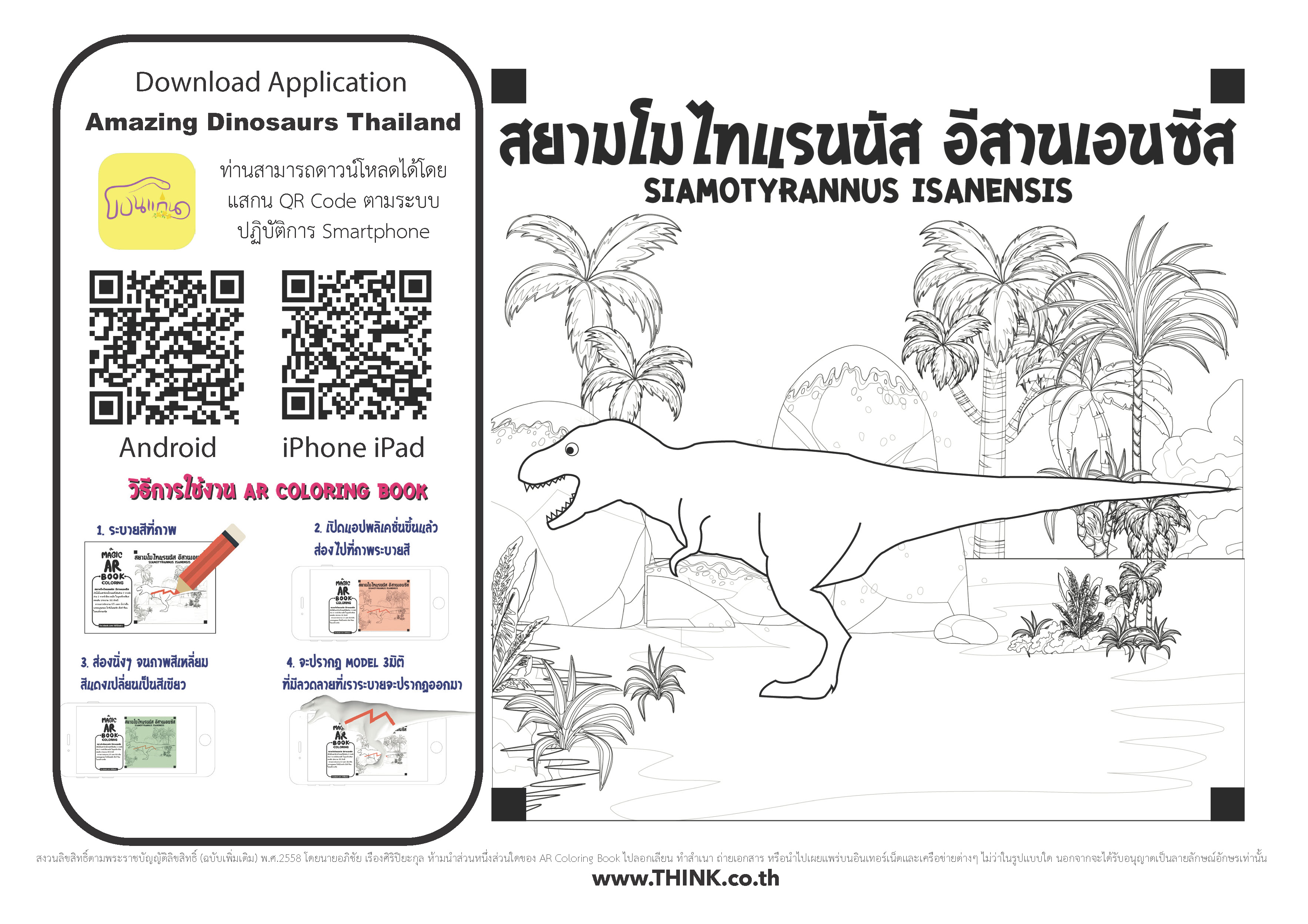 | คำสำคัญ : สยามโมไทแรนนัส อีสานเอนซีส, ภาพไดโนเสาร์, AR Coloring Book, Siamotyrannus Isanensis, Dinosaurs, สื่อเรียนรู้, สื่อเรียนรู้ AR |