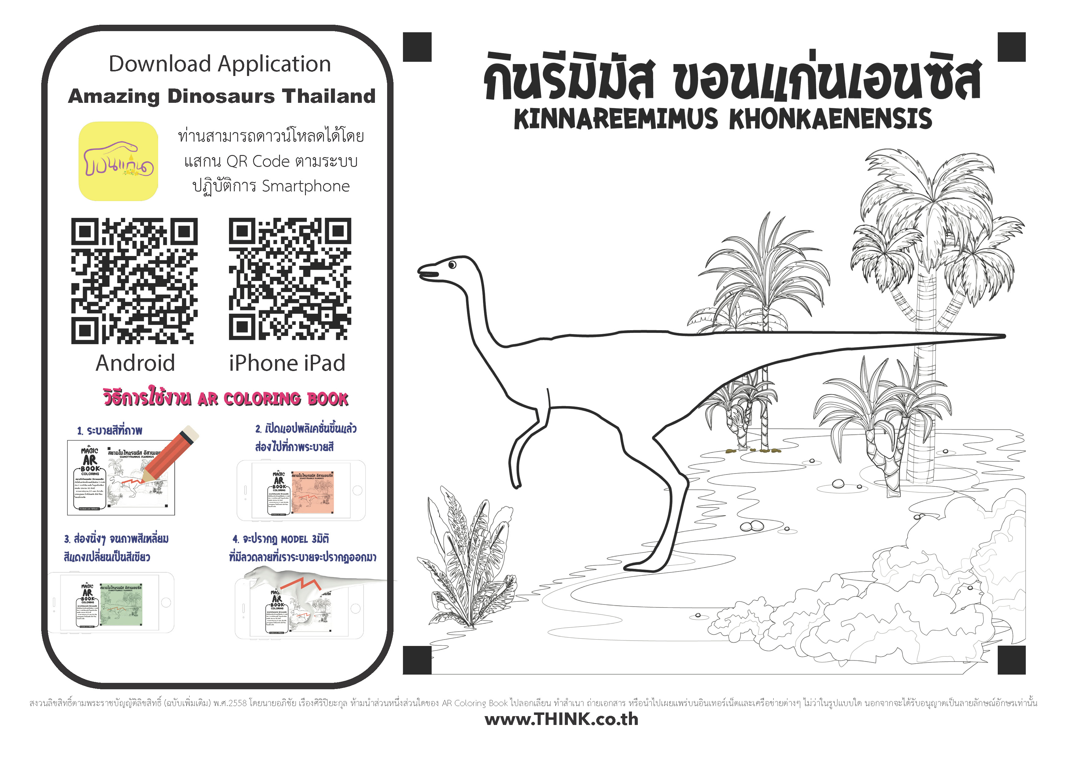 | คำสำคัญ : สื่อเรียนรู้ AR, AR Coloring Book, กินรีมิมัส ขอนแก่นเอนซีส, Kinnareemimus Khonkaenensis, Dinosaurs, ภาพไดโนเสาร์ |