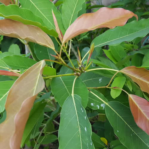 | คำอธิบาย : ผักเฮือด มีชื่อเรียกอื่นว่า ผักเฮือก, ผักฮี้ (ภาคเหนือ) ผักเลือด ผักเลียบ (ภาคกลาง,ใต้) เป็นไม้ยืนต้นขนาดกลางและเป็นไม้ผลัดใบ ใบอ่อนสีชมพูหรือชมพูอมเขียว ดูใสแวววาว มีปลอกหุ้มใบในระยะเริ่มแรก พอเจริญเต็มที่ใบอ่อนกลายเป็นใบแก่ ใช้ใบและยอดอ่อนที่ยังไม่คลี่ใช้เป็นผักแกงกับเนื้อหมูหรือเนื้อไก่ มีรสฝาดอมเปรี้ยว หรือนำไปนึ่งจิ้มน้ำพริก หรือใช้ยำ เรียกว่า ยำผักเฮือด มีคุณค่าทางโภชนาการและมีสรรพคุณทางยา เปลือกและลำต้นต้มกินแก้ปวดท้อง |