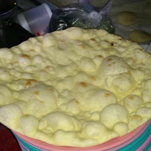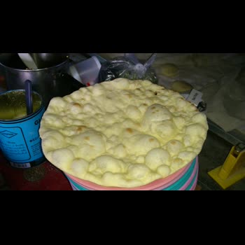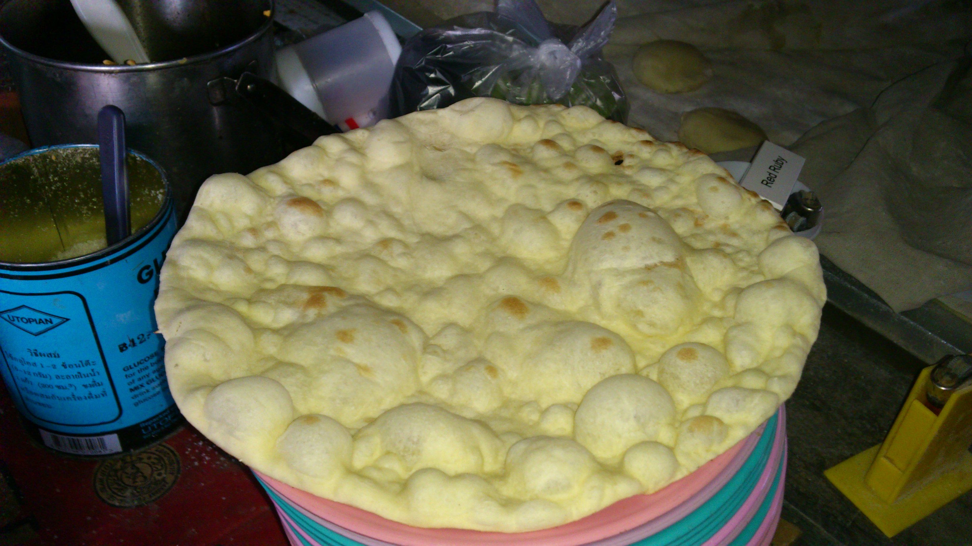 | คำอธิบาย : โรตีโอ่ง เป็นอาหารที่ทำจากแป้งสาลี เป็นอาหารประจำชาติอินเดีย แต่ก็นิยมรับประทานกันแพร่หลายในหลายประเทศ เช่นประเทศพม่า เมื่อไประเทศพม่าจะเห็นว่าโรตีแทบเป็นอาหารหลักชองประเทศพม่าเลยทีเดียว สำหรับโรตีโอ่งนี้ วิธีการเหมือนการทำโรตีทั่วไปแต่แตกต่างที่การทำให้แป้งสุกโดยการนำไปแปะด้านในของโอ่งที่มีถ่านร้อนๆอยู่ด้านล่าง โดยไม่ใช้น้ำมันเลย ซึ่งผู้ำต้องมีความชำนาญในการนำแป้งไปแปะที่โอ่ง ไม่เช่นนั้นแป้งอาจหล่นได้ |