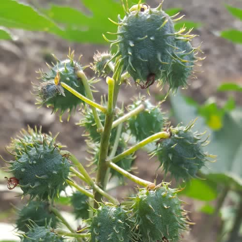 | คำอธิบาย : ละหุ่ง เป็นพืชในวงศ์ยางพารา เป็นพืชเศรษฐกิจ มีลักษณะเป็นพุ่ม ใช้ประโยชน์จากเมล็ดได้ เมื่อสกัดเมล็ดละหุ่งโดยไม่ใช้ความร้อนจะได้น้ำมันละหุ่ง (castor oil) ที่มีสารสำคัญคือ กรดริซิโนเลอิกใช้รักษาโรคปลอกประสาทเสื่อมแข็ง โรคพาร์คินสัน ข้ออักเสบ และแก้อาการผมร่วงได้ แต่หากใช้ความร้อนในการสกัดจะได้โปรตีนที่มีพิษร้ายแรงคือ ไรซิน |