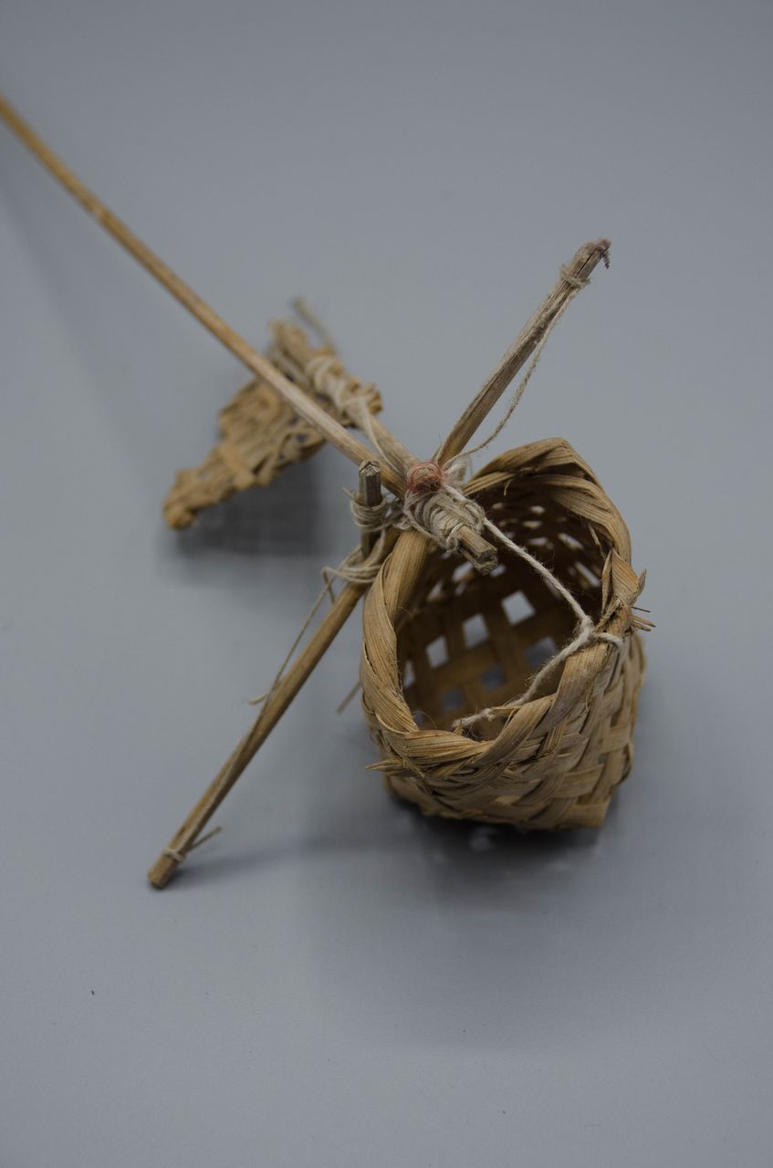 คำอธิบาย : สัญลักษณ์ต้องสานบอกผีเรือนหากมีลูกหลานเกิดเป็นชายปักไว้ที่กะล้อห่องและจะปลดไปถึงป่าช้าเมื่อเสียชีวิต |