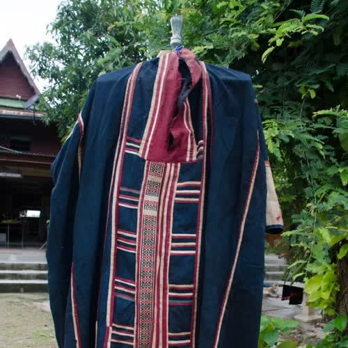 | คำอธิบาย : เสื้อฮีด้านผิดมีลายมาก ใช้คลุมศพ และพาดบ่าซ้าย คาดหน้าอกแสดงเป็นสะใภ้ในงานเสน |