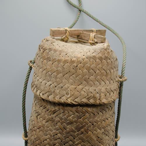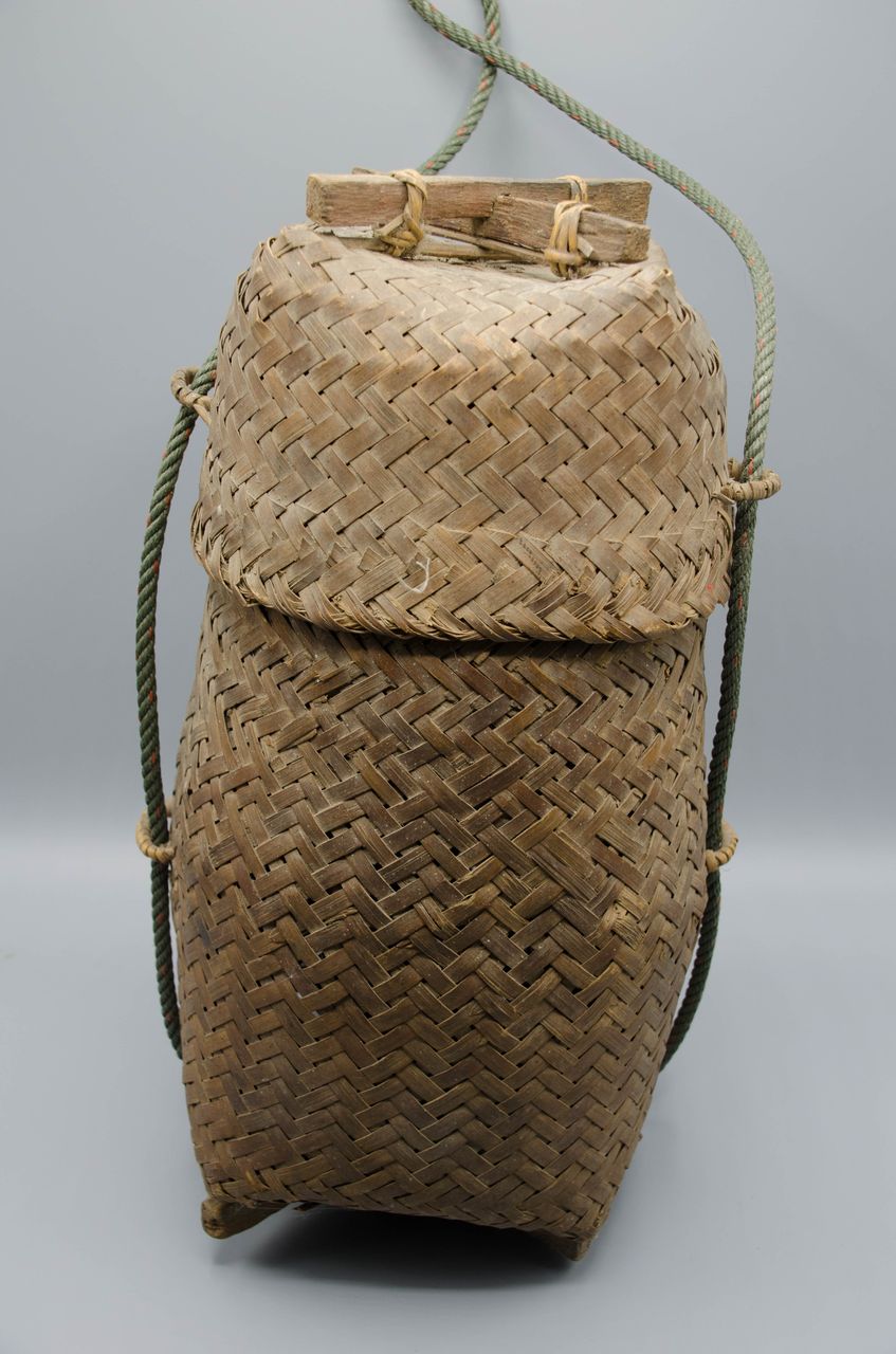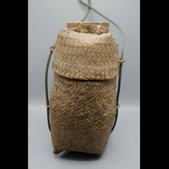 แอ๊บข้าวฝาปิดมีลวดลายอวดคุณค่า เหนือฝาปิด ใช้สำหรับใส่ข้าวเหนียว ได้รับใบอนุญาตภายใต้ ให้เผยแพร่-โดยต้องระบุที่มาแต่ห้ามดัดแปลงและห้ามใช้เพื่อการค้า 3.0 Thailand.