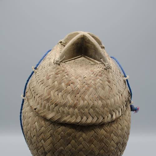 แอ๊บข้าวฝาปิดมีลวดลายอวดคุณค่า เหนือฝาปิด ใช้สำหรับใส่ข้าวเหนียว ได้รับใบอนุญาตภายใต้ ให้เผยแพร่-โดยต้องระบุที่มาแต่ห้ามดัดแปลงและห้ามใช้เพื่อการค้า 3.0 Thailand.