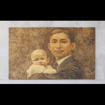 | คำอธิบาย : ภาพเขียนด้วยดิน เป็นพระสาทิสลักษณ์สมเด็จพระมหิตลาธิเบศร อดุลยเดชวิกรม พระบรมราชชนก ทรงอุ้มสมเด็จพระเจ้าพี่นางเธอเจ้าฟ้ากัลยาณิวัฒนา กรมหลวงนราธิวาสราชนครินทร์ในขณะยังทรงพระเยาว์ โดยศิลปิน คุณสมภพ บุตราช ได้วาดขึ้นจากดินที่มีสีต่างๆกันซึ่งนำมาจาก 76 จังหวัดทั่วประเทศไทย ปัจจุบันติดตั้งอยู่ในหอพระราชประวัติสมเด็จพระบรมราชชนกและหอเกียรติยศแห่งมหาวิทยาลัยมหิดล ณ อาคารศูนย์การเรียนรู้มหิดล มหาวิทยาลัยมหิดล ศาลายา |