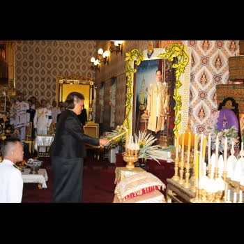 ทรงบำเพ็ญพระราชกุศลถวายภัตตาหารเช้าแด่พระภิกษุสงฆ์ ในการพระพิธีธรรมสวดพระอภิธรรมพระบรมศพ ได้รับใบอนุญาตภายใต้ ให้เผยแพร่-ดัดแปลง-โดยต้องระบุที่มาแต่ห้ามใช้เพื่อการค้า 3.0 Thailand.