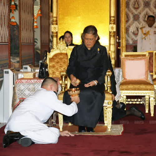 | คำอธิบาย : วันพุธที่ ๓๐ พฤศจิกายน พุทธศักราช ๒๕๕๙ เวลา ๗ นาฬิกา ๕ นาที สมเด็จพระเทพรัตนราชสุดาฯ สยามบรมราชกุมารี เสด็จฯ พร้อมด้วยคุณพลอยไพลิน เจนเซน ไปทรงบำเพ็ญพระราชกุศลถวายภัตตาหารเช้าแด่พระภิกษุสงฆ์ ในการพระพิธีธรรมสวดพระอภิธรรมพระบรมศพพระบาทสมเด็จพระปรมินทรมหาภูมิพลอดุลยเดช มหิตลาธิเบศรรามาธิบดี จักรีนฤบดินทร สยามินทราธิราช บรมนาถบพิตร ณ พระที่นั่งดุสิตมหาปราสาท ในพระบรมมหาราชวัง |