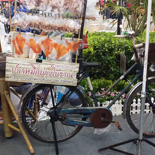 คำอธิบาย : รถจักรยานขายปลาหมึกย่าง |