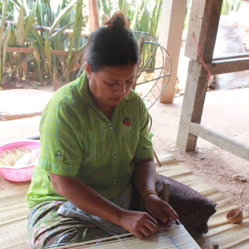 คำอธิบาย : มัดหมี่ คือ การสร้างลายผ้าด้วยการใช้เชือกฟางมัดที่ผ้าให้เป็นลวดลายตามที่ต้องการโดยใช้อุปกรณ์คือ มีดโกนมีด้ามหรือมีดบางเล็กๆ และเชือกฟาง จากนั้นนำไปย้อมสี เมื่อแกะเชือกฟางที่มัดออกก็จะเกิดลวดลายต่างๆ หากต้องการให้ผ้ามีหลายสีก็ใช้เชือกฟางมัดลายแล้วนำไปย้อมสีหลายครั้ง |