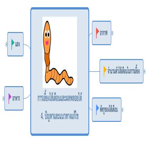 | คำสำคัญ : ปัญหาและแนวทางแก้ไข, ไส้เดือน, mind map, การเลี้ยงไส้เดือนและผลพลอยได้, แผนที่ความคิด |
