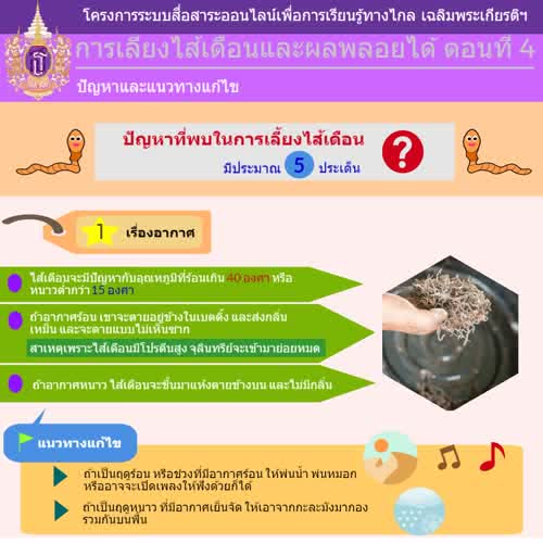 Infographic การเลี้ยงไส้เดือนและผลพลอยได้ ตอนที่ 4 ปัญหาและแนวทางแก้ไข