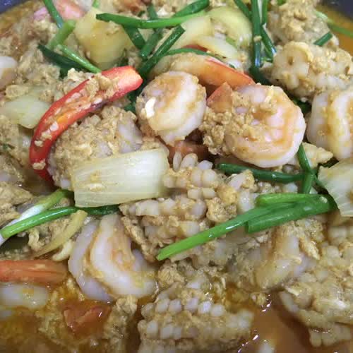 คำสำคัญ : อาหารคาว, ผัดผงกะหรี่, กับข้าว |