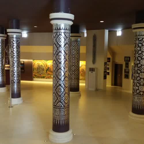 | คำอธิบาย : เสาสลักลายไทยภายในห้องโถง ใต้มหาเจดีย์รัตนะ ต.พระลับ อ.เมือง จ.ขอนแก่น |