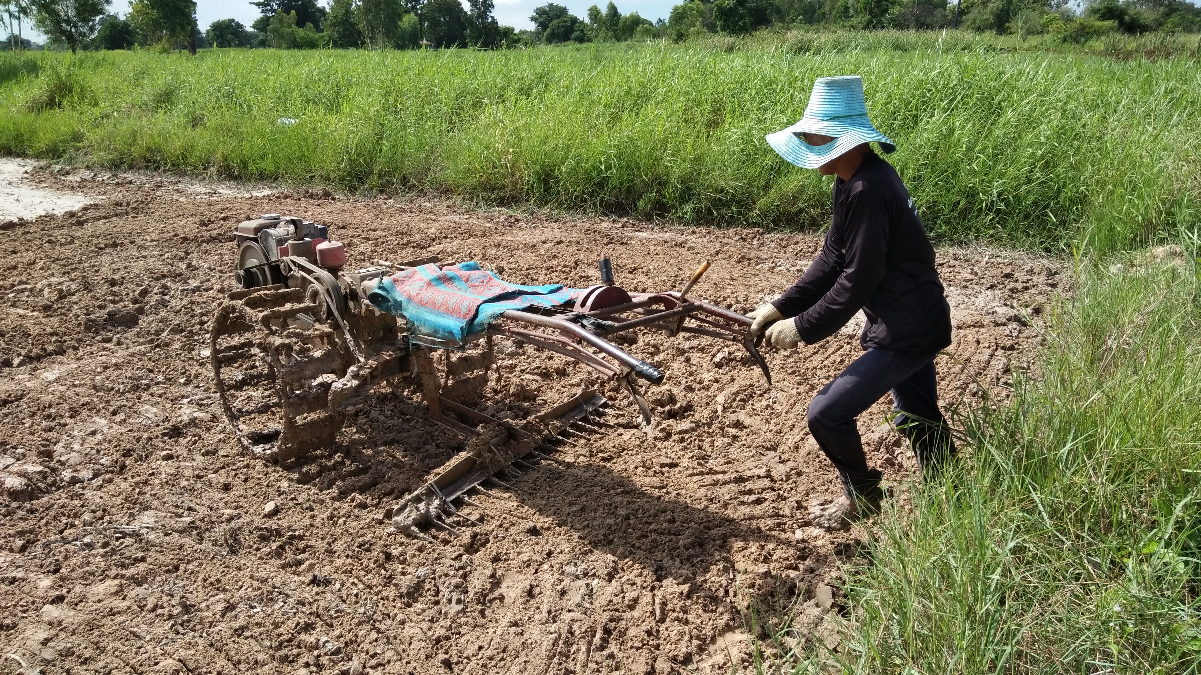 การไถคราดด้วยเครื่องยนต์ไถนาแบบเดินตาม ได้รับใบอนุญาตภายใต้ ให้เผยแพร่-ดัดแปลง-โดยต้องระบุที่มา 3.0 Thailand.