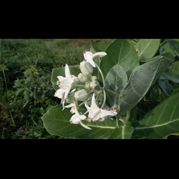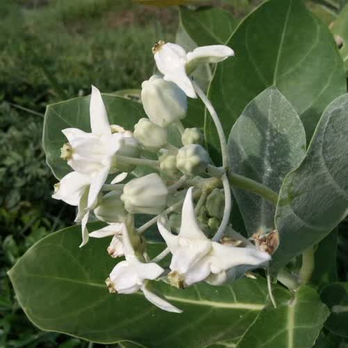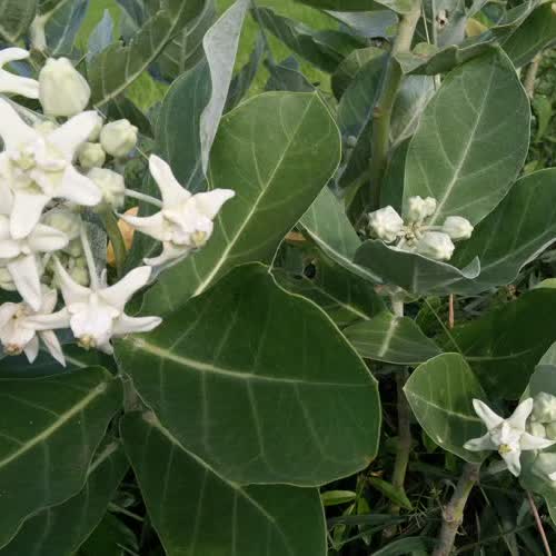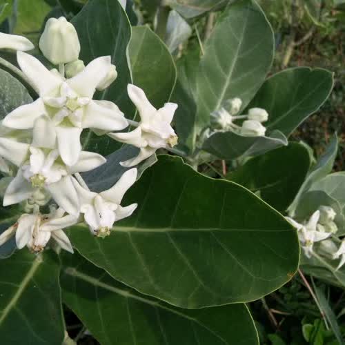 | คำอธิบาย : ต้นดอกรัก เป็นไม้พุ่มขนาดความสูง 1.5 - 3 เมตร มียางสีขาว ใช้ดอกสำหรับร้อยมาลัย |
