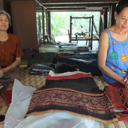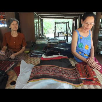 | คำอธิบาย : กลุ่มทอผ้าซิ่นตีนจก คุณยายซ้อน กำลังหาญ ต.คูบัว อ.เมือง จ.ราชบุรี กับผ้าซิ่นตีนจกโบราณและผ้าซิ่นตีนจกแบบโบราณ ที่ทอขึ้นใหม่สำหรับจำหน่าย |