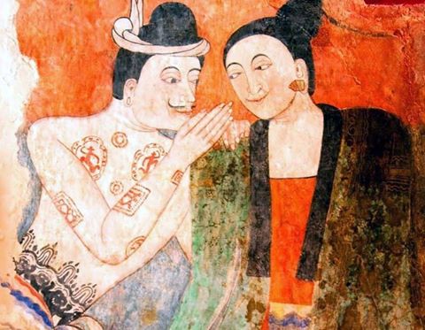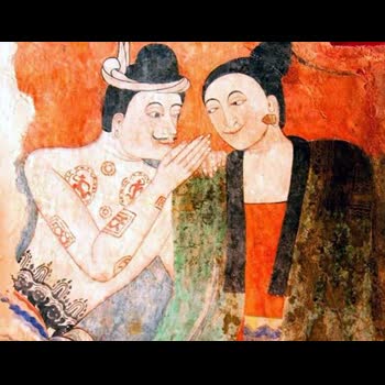 | คำอธิบาย : ปู่ม่านย่าม่าน ภาพชายหญิงกำลังกระซิบและมีชื่อเสียงว่าเป็นภาพ "กระซิบรักบันลือโลก" ซึ่งเป็นภาพจิตรกรรมฝาผนังภายในวัดภูมินทร์ จ.น่าน |