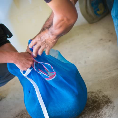 เอามูลใส่เดือนห่อด้วยผ้าขาวบางหรือผ้ามุ้งไนล่อนสีฟ้าที่น้ำสามารถเข้าได้ ได้รับใบอนุญาตภายใต้ ให้เผยแพร่-ดัดแปลง-โดยต้องระบุที่มา 3.0 Thailand.