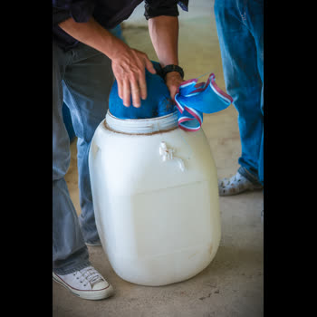 คำอธิบาย : นำห่อมูลไส้เดือนนั้นใส่ไปในถังที่เตรียมไว้ |