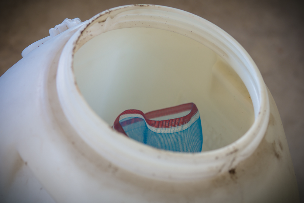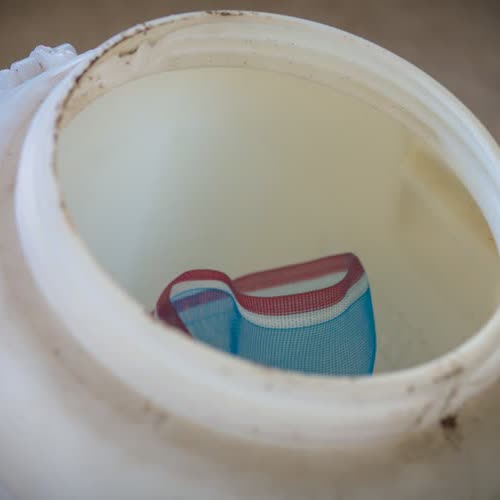 | คำอธิบาย : ห่อมูลไส้เดือนในถังน้ำที่เตรียมไว้แช่ |