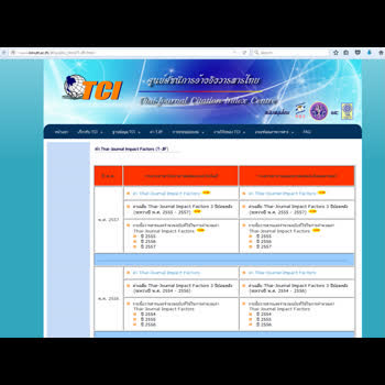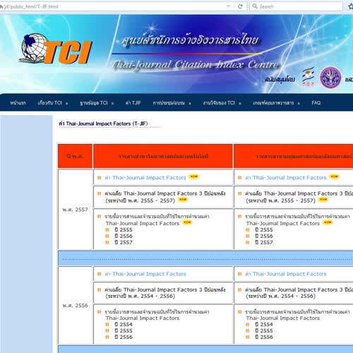 | คำอธิบาย : หน่วยงาน ศูนย์ดัชนีการอ้างอิงวารสารไทย Thai-Journal Citation Index Centre , TCI สังกัด มหาวิทยาลัยเทคโนโลยีพระจอมเกล้าธนบุรี (มจธ.) ได้พัฒนาค่า Impact factor วารสารไทย มาตั้งแต่ปี 2545-ปัจจุบัน เปิดบริการแบบเปิด อยู่ที่หน้าเว็บไซต์ http://www.kmutt.ac.th/jif/public_html/T-JIF.html แบ่งเป็นสาขา วิทยาศาสตร์ + มนุษยศาสตร์ มีจำนวนวารสารไทย ประมาณ 258 + 296 ชื่อโดยในปี 2557 มีการแสดง ค่า IF ของวารสารไทยสาขาวิทยาศาสตร์ ดังที่หน้าเว็บ http://www.kmutt.ac.th/jif/Impact/impact_s.phpเรียงลำดับตามชื่อวารสาร อังกฤษ และ ไทย แต่ละชื่อ วารสารมีค่า IF แสดง เช่น 0.023 / 0.056 เป็นต้นโครงการวิจัยนี้ ได้รับการสนับสนุนทุนจาก สกว. สกอ. และ วช. มีหัวหน้าศูนย์คือ ศ.ดร.ณรงค์ฤทธิ์ สมบัติสมภพ |