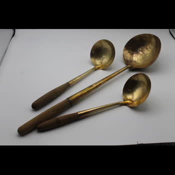 | คำสำคัญ : ขนมไทย, อุปกรณ์ทำขนมไทย, เครื่องทองเหลือง, กระบวย |
