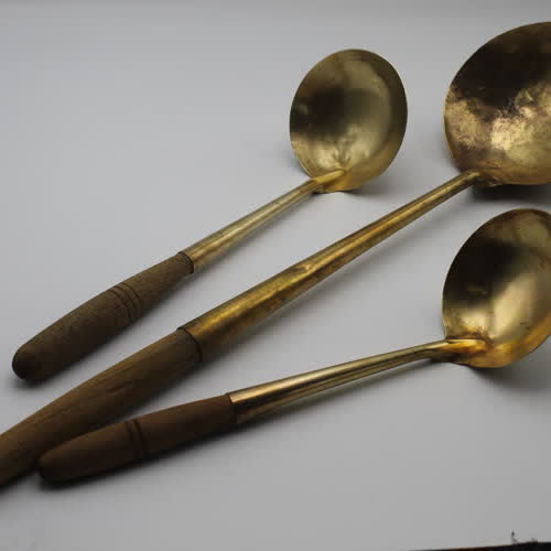 คำสำคัญ : ขนมไทย, อุปกรณ์ทำขนมไทย, เครื่องทองเหลือง, กระบวย |