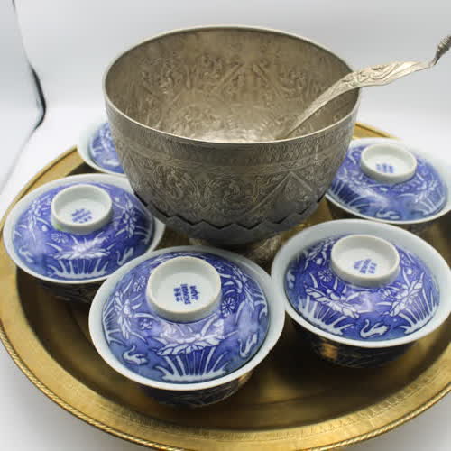 | คำสำคัญ : เครื่องทองเหลือง, เครื่องเรือน, ชามชุดสำหรับไปวัด, ขนมไทย |