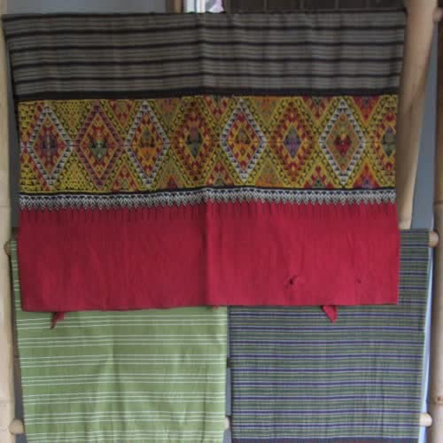 | คำอธิบาย : ซิ่นตีนจกน้ำท่วม เป็น ซิ่นตีนจก ที่มีชื่อเสียงของ จ.เชียงใหม่ ที่โด่งดังไม่แพ้ ซิ่นตีนจกแม่แจ่ม ด้วยประวัติศาตร์ของพื้นที่ของช่างทอบริเวณเหนือเขื่อนภูมิพล ทำให้ผ้าซิ่นตีนจกกลุ่มนี้ ได้รับการขนานนามว่า เนื่องจากได้รับผลกระทบจากการสร้างเขื่อน ทำให้น้ำเอ่อล้นเข้าท่วมพื้นที่และช่างทอต้องอพยพโยกย้ายถิ่นจากบริเวณเดิม ซิ่นตีนจกน้ำท่วม จัดเป็นหนึ่งในเบญจภาคีผ้าซิ่นแห่งดินแดนล้านนาที่หายาก ปัจจุบันมีการรื้อฟื้นสืบทอดการทอซิ่นตีนจกน้ำท่วมนี้ที่ อ.ดอยเต่า จ.เชียงใหม่ และ อ.ลี้ ใน จ.ลำพูนด้วย |