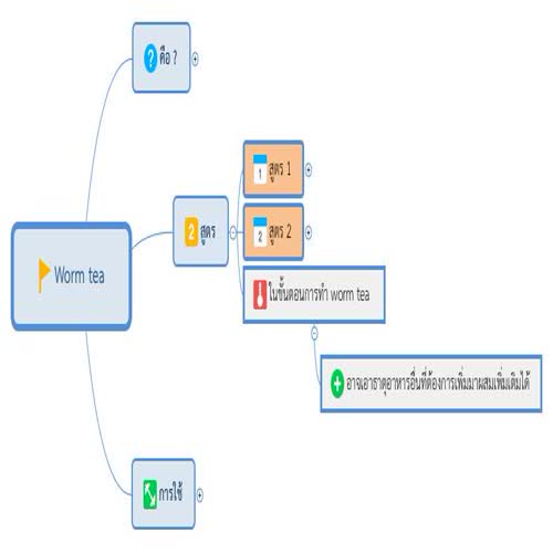 (2560). "แผนที่ความคิด (Mind map) ผลที่ได้จากการเลี้ยงไส้เดือน : เอามูลไส้เดือนไปต่อยอด - worm tea (สูตรส่วนผสมของ worm tea)".