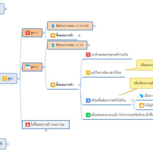 (2560). "แผนที่ความคิด (Mind map) ผลที่ได้จากการเลี้ยงไส้เดือน : เอามูลไส้เดือนไปต่อยอด - worm tea (ขั้นตอนการทำของสูตรที่ 2)".