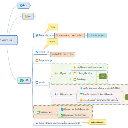 รีวิว : แผนที่ความคิด (Mind map) ผลที่ได้จากการเลี้ยงไส้เดือน : เอามูลไส้เดือนไปต่อยอด - worm tea (วิธีใช้)