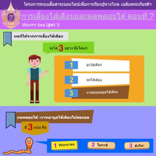 | คำสำคัญ : การเลี้ยงไส้เดือนและผลพลอยได้, ผลที่ได้จากการเลี้ยงไส้เดือน, infographic, ไส้เดือน, เอามูลไส้เดือนไปต่อยอด, Worm tea |