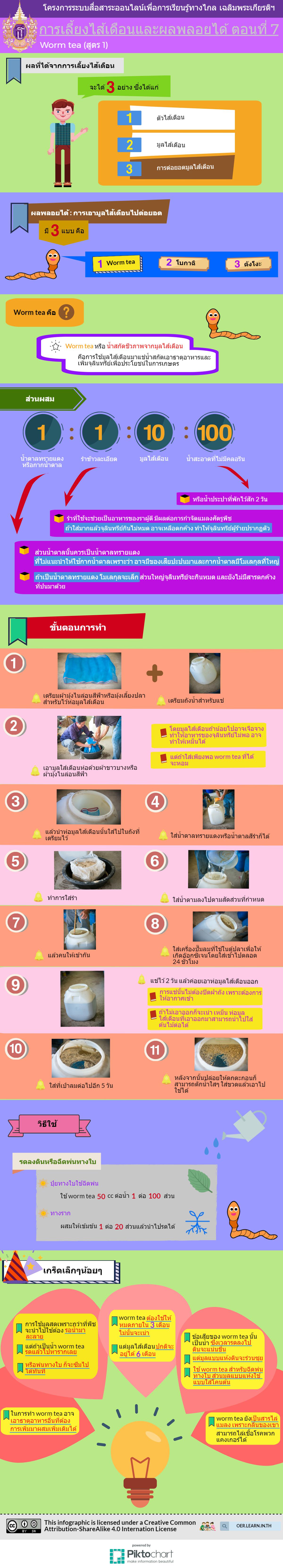 "Infographic การเลี้ยงไส้เดือนและผลพลอยได้ ตอนที่ 7 ผลที่ได้จากการเลี้ยงไส้เดือน : เอามูลไส้เดือนไปต่อยอด - worm tea (สูตร 1)".