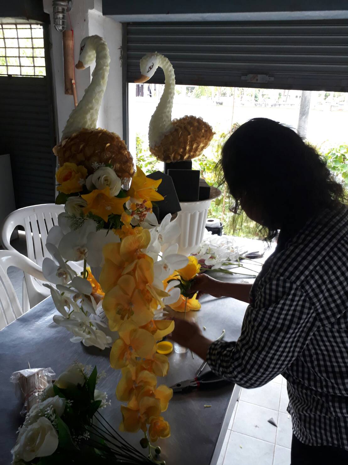 | คำสำคัญ : การจัดดอกไม้, งานฝีมือ, การจัดพานพุ่มรูปนกยูง, การจัดพานพุ่ม |