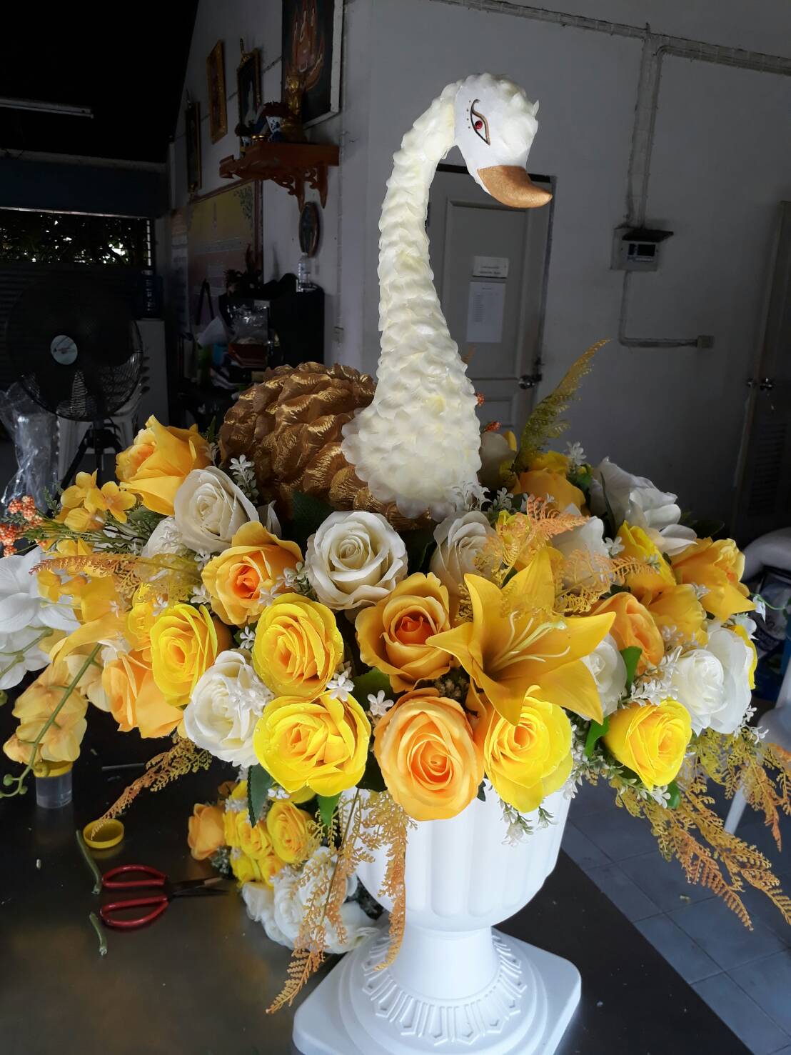 | คำสำคัญ : การจัดพานพุ่มรูปนกยูง, งานฝีมือ, การจัดดอกไม้, การจัดพานพุ่ม |