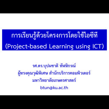 ชื่อเรื่อง : เอกสารประกอบการเรียนเรื่อง การเรียนรู้ด้วยโครงการโดยใช้ไอซีที (Project-based Learning using ICT) |