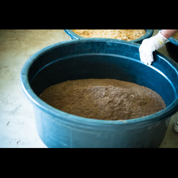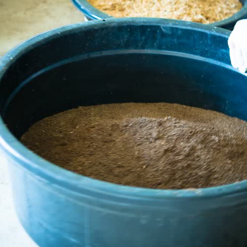 นำมูลไส้เดือน 1 ส่วนมาเตรียมทำโบกาฉิ