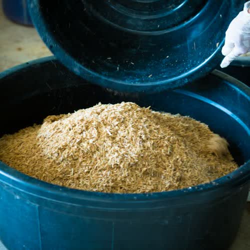 นำแกลบดิบ 1 ส่วนมาเตรียมทำโบกาฉิ