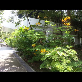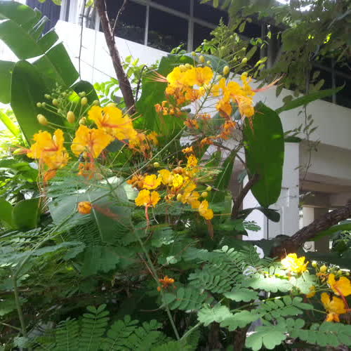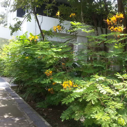 | คำอธิบาย : ต้นหางนกยูงไทย สีเหลือง ปลูกอยู่บริเวณด้านข้างตึกวิทยาลัยนานาชาติ |