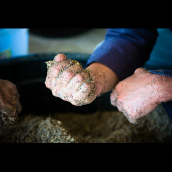 | คำอธิบาย : การวัดความชื้นของโบกาฉิ ที่ 65% ให้หยิบโบกาฉิที่ทำอยู่มาบีบจะต้องมีน้ำซึมบางๆ ไม่ไหลโจ๊ก ถ้าไหลแบบนั้นแปลว่าความชื้นมากไป แต่ถ้าไม่มีน้ำเลยก็แปลว่าแห้งไป |