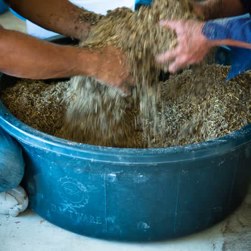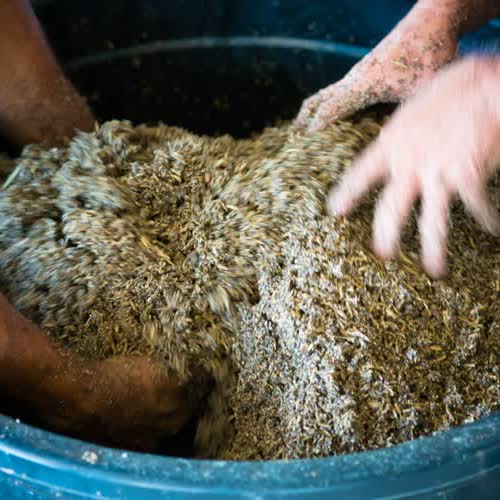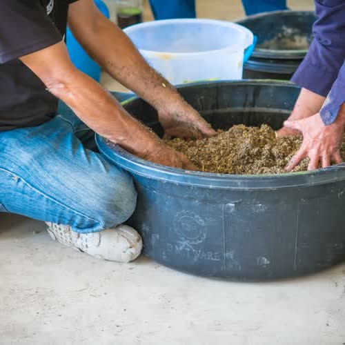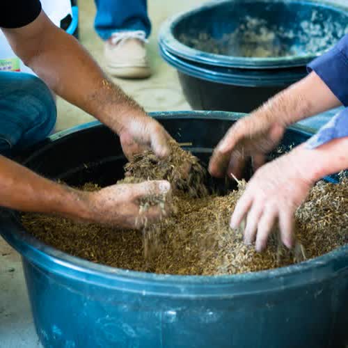 | คำอธิบาย : ถ้ายังชื้นไม่ถึง 65% ไม่พอให้เติมแบบน้ำเพิ่มแล้วคลุกเคล้าให้เข้ากัน ของการทำโบกาฉิ |