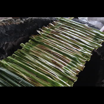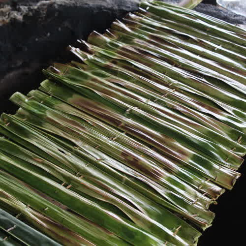| คำอธิบาย : การปิ้งขนมจากไม่ควรใช้ไฟร้อนจัด เพราะจะทำให้ใบจากไหม้เสียก่อน และขนมจากที่ปิ้งเสร็จแล้วจะสีเหลืองนวล และมีรสชาติหวาน มัน หอม |