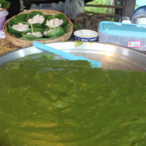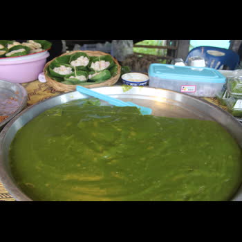 | คำอธิบาย : ขนมเปียกปูนมีรสชาติอร่อยหอมหวาน มีกลิ่นหอมๆ ที่เป็นเอกลักษณ์เฉพาะตัว และมีสีสันสวยงาม สีเขียวของขนมเปียกปูนได้จากใบเตยกลิ่นหอมๆ โรยมะพร้าวลงไปอีกสักนิด จะทำให้อร่อยหอมหวานมากยิ่งขึ้น |