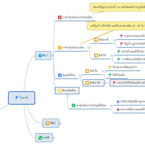 (2560). "แผนที่ความคิด (Mind map) ผลที่ได้จากการเลี้ยงไส้เดือน : เอามูลไส้เดือนไปต่อยอด - โบกาฉิ (โบกาฉิ คืออะไร)".
