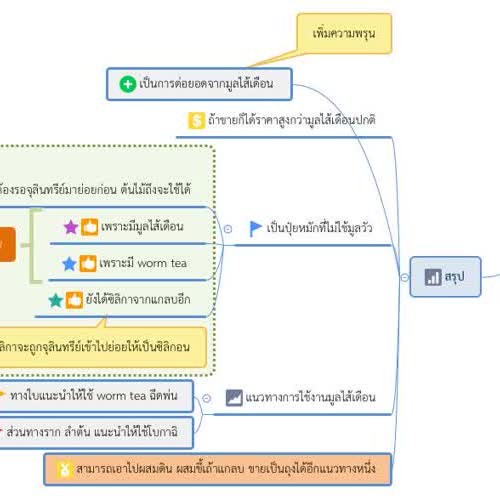 | คำสำคัญ : ผลที่ได้จากการเลี้ยงไส้เดือน, เอามูลไส้เดือนไปต่อยอด, การเลี้ยงไส้เดือนและผลพลอยได้, แผนที่ความคิด, โบกาฉิ, ไส้เดือน, mind map |
